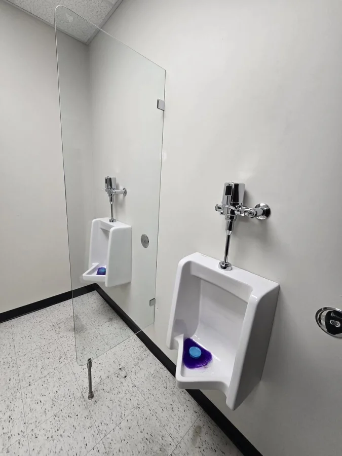 Разделитель между писсуарами установлен